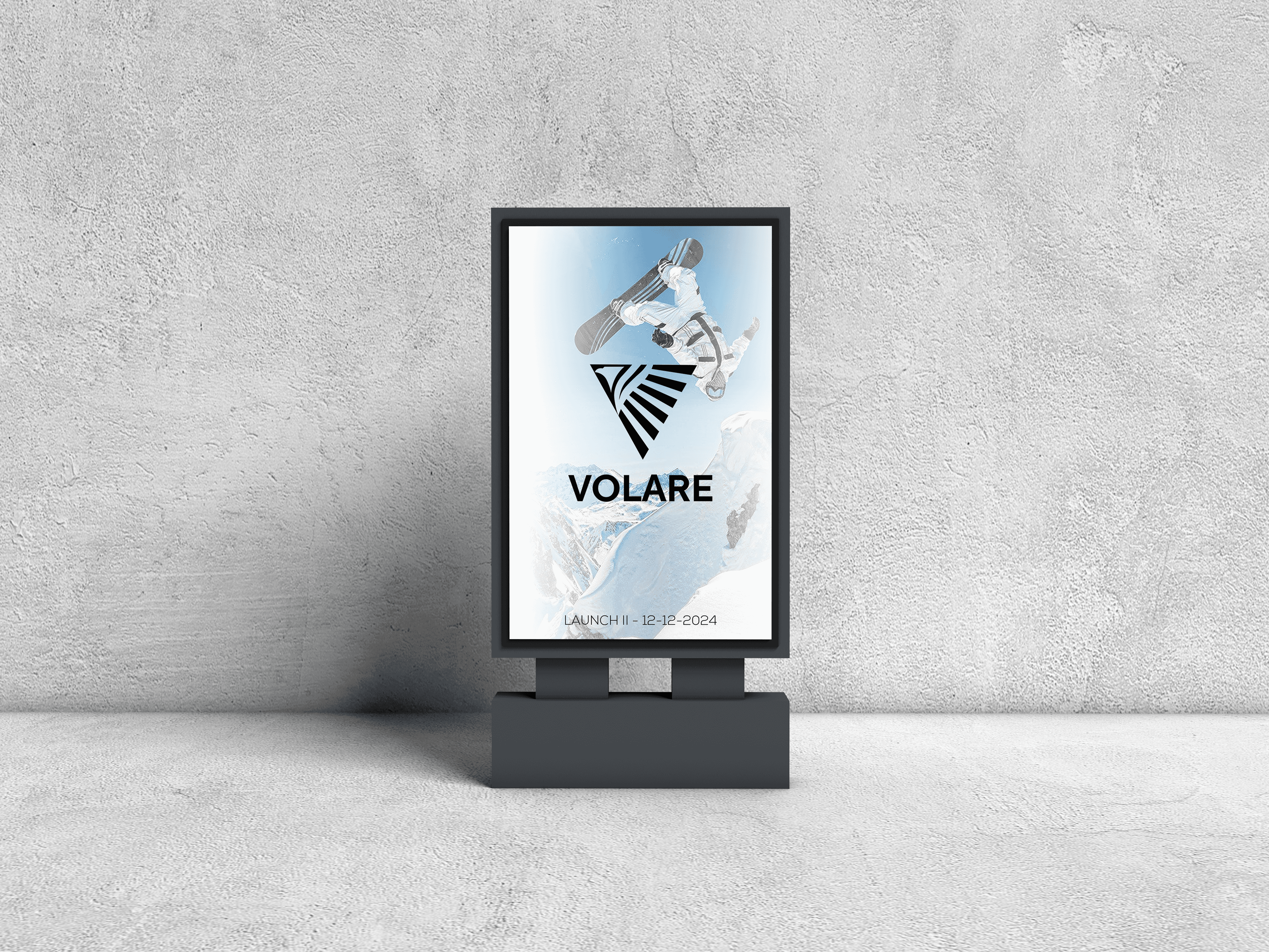 La hiérarchie visuelle et les contrastes ont été pensés pour capter immédiatement l’attention et refléter l’univers premium et technique de Volare.
